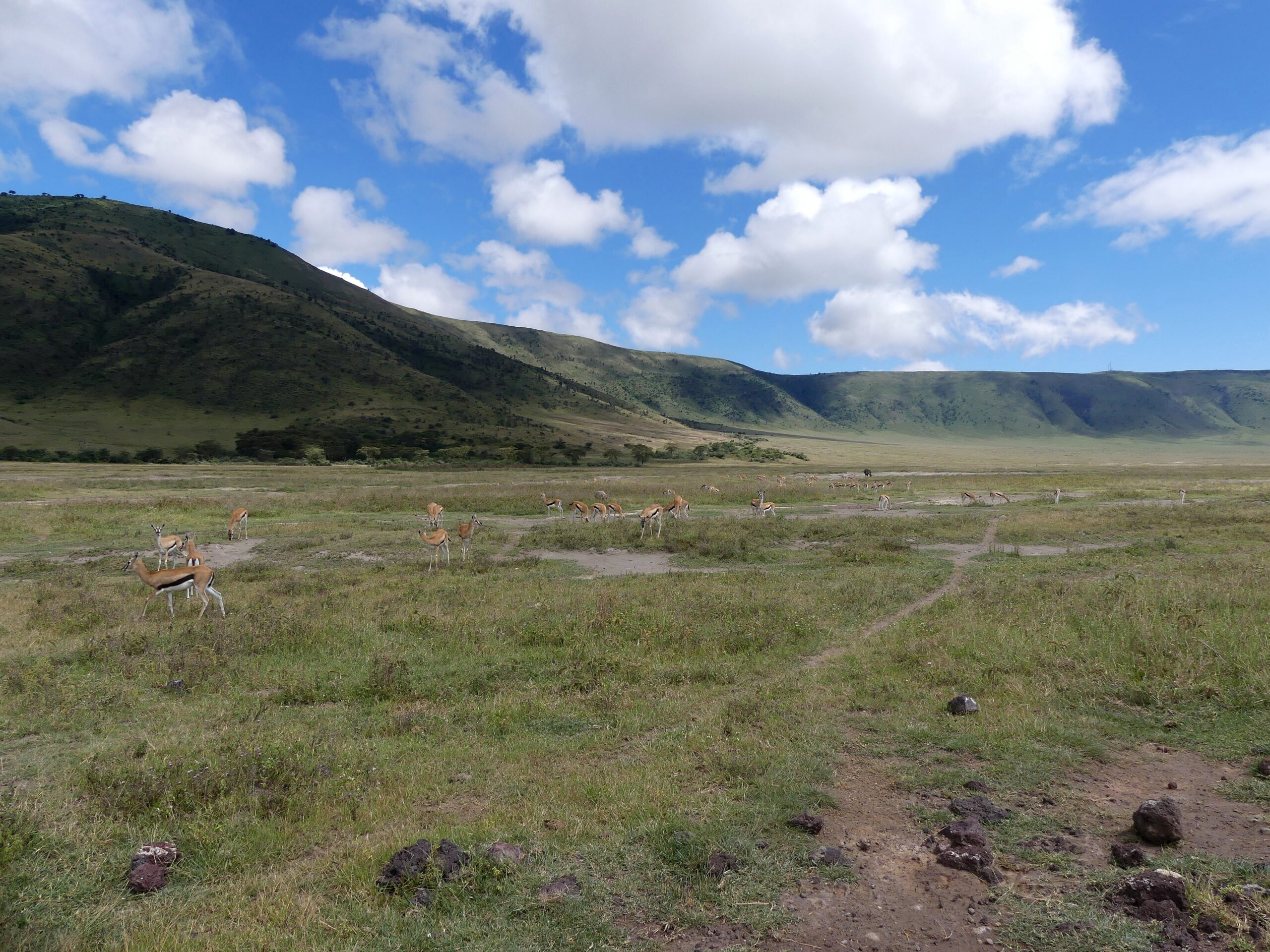 Der Ngorongoro-Krater steht auf der UNESCO-Liste und gilt als die größte intakte vulkanische Caldera der Welt. Er ist Heimat für Hunderte verschiedener Tierarten. Der Kraterboden liegt auf etwa 1.700 Metern Höhe und die Seitenwände sind zwischen 400 und 600 Meter hoch. Alle großen afrikanischen Säugetiere sind hier zu finden: Löwe, Leopard und Hyäne zusammen mit gesunden Herden von Gnus, Zebras, Büffeln, Elefanten, Flusspferden und Nashörner.